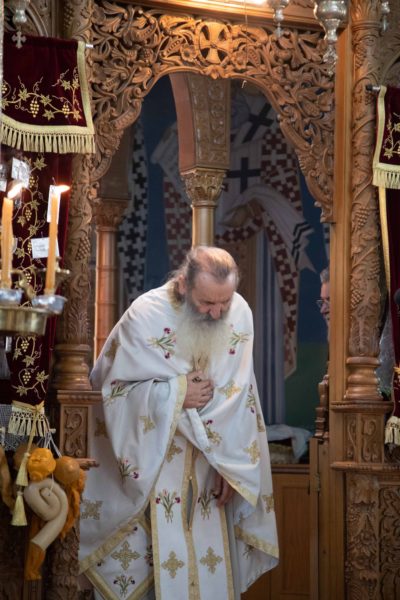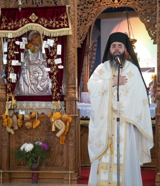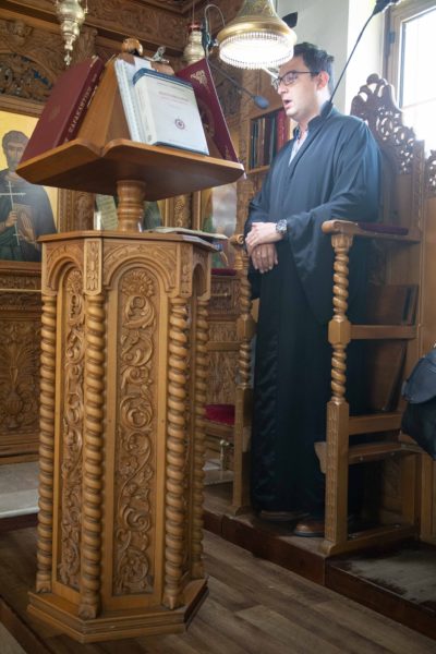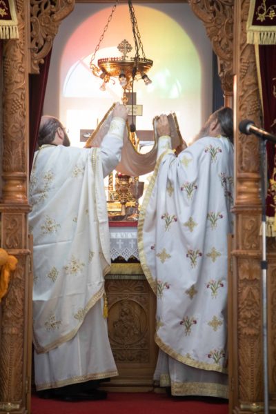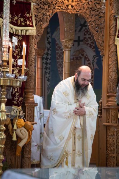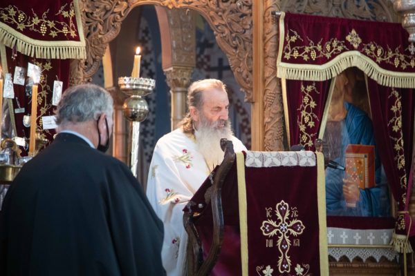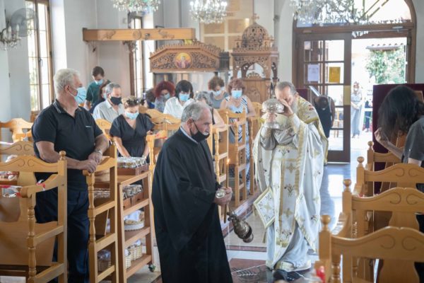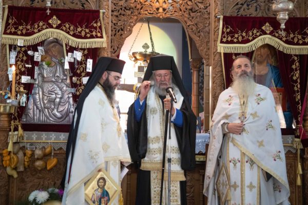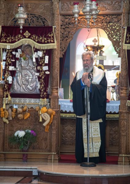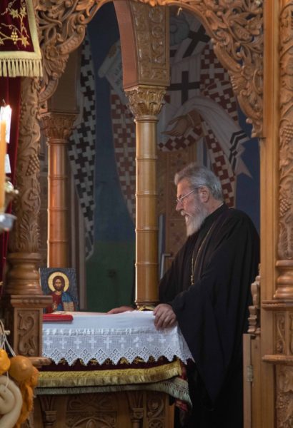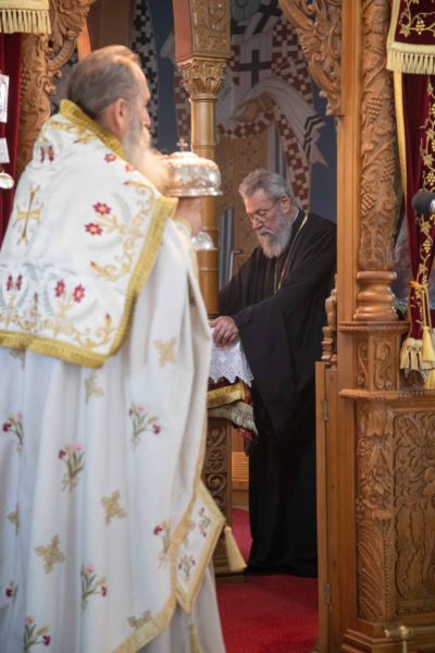 Της προηγηθείσης Θείας Λειτουργίας προεξήρχε ο ιδιαίτ. Γραμματέας του Μακαριωτάτου, Αρχιμ. Τριφύλλιος Ονησιφόρου, συλλειτουργούντος του εφημερίου του ναού π. Γεωργίου Χρυσοστόμου.