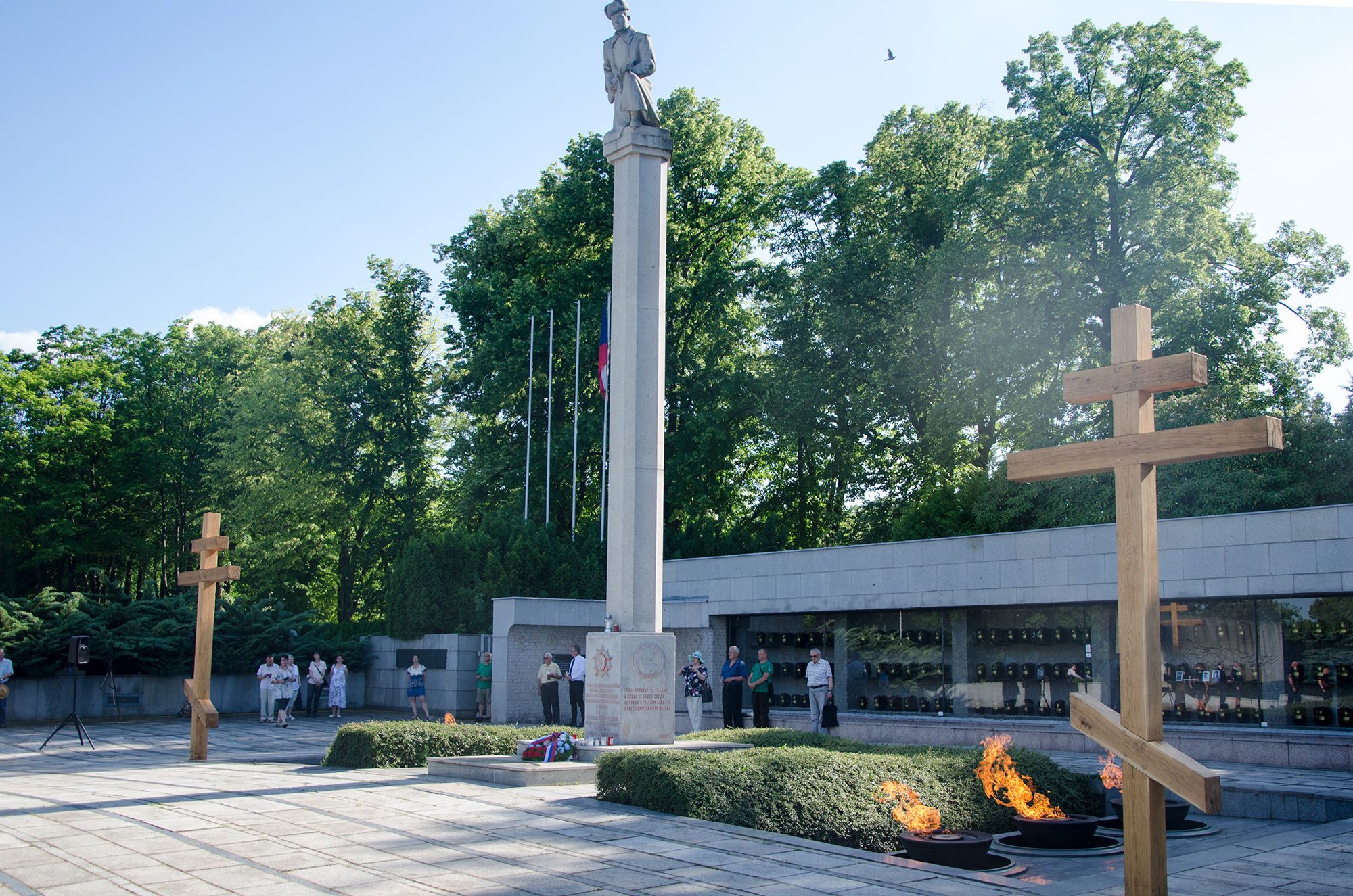 Οι σταυροί που είναι αφιερωμένοι στην μνήμη των στρατιωτών που έπεσαν μαχόμενοι κατά την διάρκεια της απελευθέρωσης της πόλης στον Β’ Παγκόσμιο Πόλεμο, δεν είχαν τοποθετηθεί εκ νέου στην θέση τους μετά το πέρας των εργασιών την διετία 1979-1980.