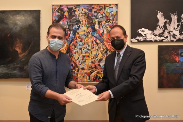 Στον χαιρετισμό του ο Πρύτανης του ΑΠΘ δήλωσε: «Η σημερινή εκδήλωση είναι από τις πιο ξεχωριστές που έχουμε τη χαρά να διοργανώσουμε ως Αριστοτέλειο Πανεπιστήμιο σε συνεργασία με το πάντοτε δραστήριο Μουσείο Μακεδονικού Αγώνα, διότι ήρθαμε να τιμήσουμε αυτούς τους οποίους, ως Ανώτατο Εκπαιδευτικό Ίδρυμα, πρωτίστως εκπροσωπούμε: τους ίδιους μας τους φοιτητές. Οι συνθέσεις των σχεδόν πενήντα συμμετεχόντων στην έκθεση αποτελούν την πιο πιστή μαρτυρία των ζυμώσεων που λαμβάνουν χώρα στο Πανεπιστήμιό μας όλο αυτό το δύσκολο διάστημα της πανδημίας και που τώρα πια καθίσταται εφικτό να εκφραστούν στον φυσικό τους χώρο με τον προσήκοντα τρόπο. Όπως εύγλωττα τονίζει ο τίτλος της έκθεσης, τα όσα θα δούμε “απηχούν” τον Αγώνα του ‘21. Είναι εδώ όπου η “άυλη” μνήμη ανακλάται ως απτή αποτύπωση. Και συνάμα η συλλογική μας μνήμη και η εθνική μας ταυτότητα συναντώνται φαντασιακά με τη σημαντικότερη τομή της Νεότερης Ελληνικής Ιστορίας. Αποτελεί μία αναδρομή στο παρελθόν όσο και μία κλεφτή ματιά στο μέλλον, καθώς μας δίνεται μία σπάνια ευκαιρία να δούμε τον τρόπο με τον οποίο η νεότερη γενιά, τα δικά μας παιδιά, συλλογίζονται τους προγονικούς αγώνες της πατρίδας μας».
