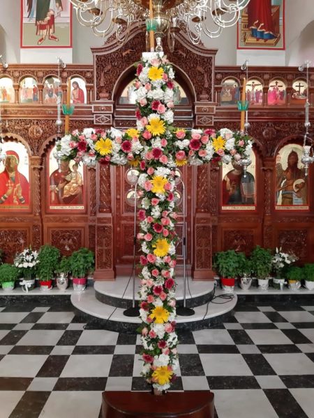 Ανθοστόλιστος και χαροποιός ήταν ο Σταυρός του Ιερού Αγίας Μαρίνας Περιστερίου επί τη εορτή της Παγκοσμίου Υψώσεως του Τιμίου Σταυρού.