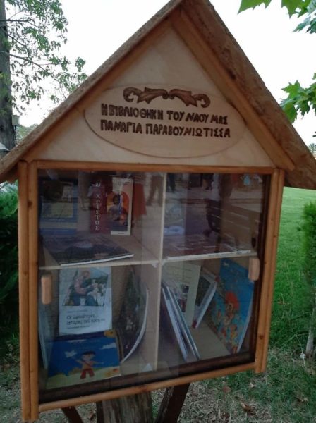 Στον προαύλειο χώρο του Ιερού Ναού Παναγίας Παραβουνιώτισσας στην Ερέτρια τελέσθηκε το απόγευμα της Τρίτης, 13ης Ιουλίου, με τη χάρη του Θεού και της Υπεραγίας Θεοτόκου το Ιερό Ευχέλαιο και ο Αγιασμός της νέας χειροποίητης βιβλιοθήκης του εξωτερικού χώρου του Ναού. Μια βιβλιοθήκη που ήρθε ως αντίδραση στον εθισμό του Ίντερνετ, προς πνευματική ωφέλεια των πιστών αναγνωστών της ενορίας.