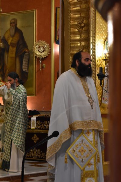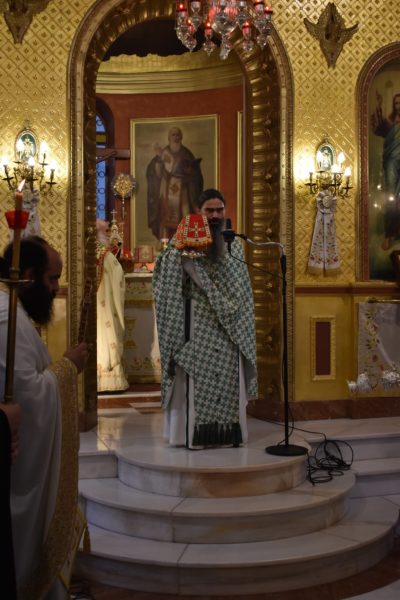 Ακολούθησε Ιερά Αγρυπνία, στην οποία προεξήρχε ο Αρχιμανδρίτης π. Πολύκαρπος Τσιμιτσάς.
