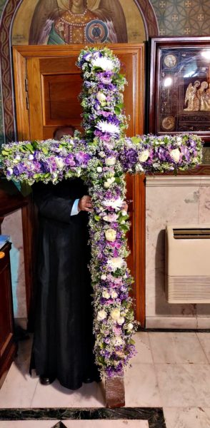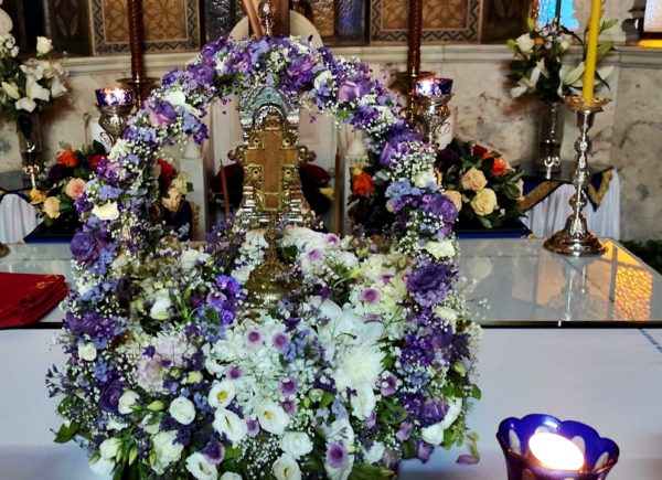 Ο στολισμός του Σταυρού ήταν και φέτος αρχοντικός, μοσχοβολιστός, πυκνός, εικόνα νίκης και σωτηρίου χαρμολύπης υπό το φως των κεριών που μοιράστηκαν προς το εκκλησίασμα και συνόδευσαν την ιερά αγρυπνία.