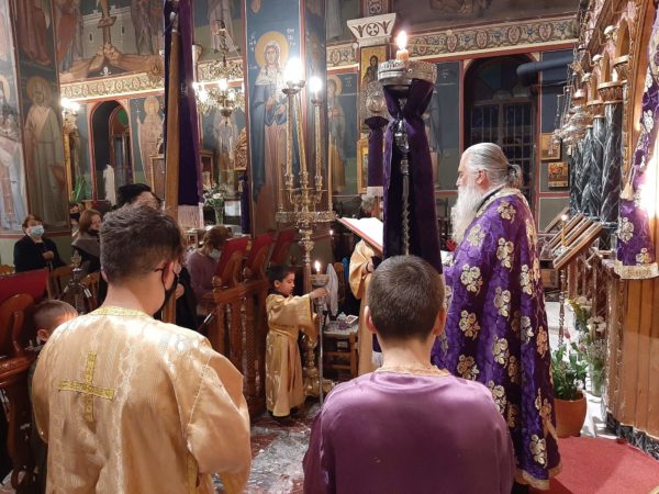 Με την κατανυκτική Ακολουθία των Αγίων και Αχράντων Παθών του Κυρίου τελέσθηκε το απόγευμα της Μεγάλης Πέμπτης 29 Απριλίου 2021 η κορύφωση του θείου δράματος στον Ιερό Ναό Αγίου Νικολάου Ερέτριας, όπου ιερούργησε ο εφημέριος του ναού, Πρωτοπρεσβύτερος Θεοφάνης Παπαγεωργίου.