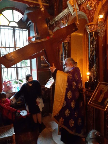 Οι πιστοί εντός και εκτός του ιερού ναού συνέρρευσαν ευλαβικά και με τάξη, τηρώντας τις υγειονομικές διατάξεις, να προσκυνήσουν τον Εσταυρωμένο Κύριο και να του εναποθέσουν τις ελπίδες τους.