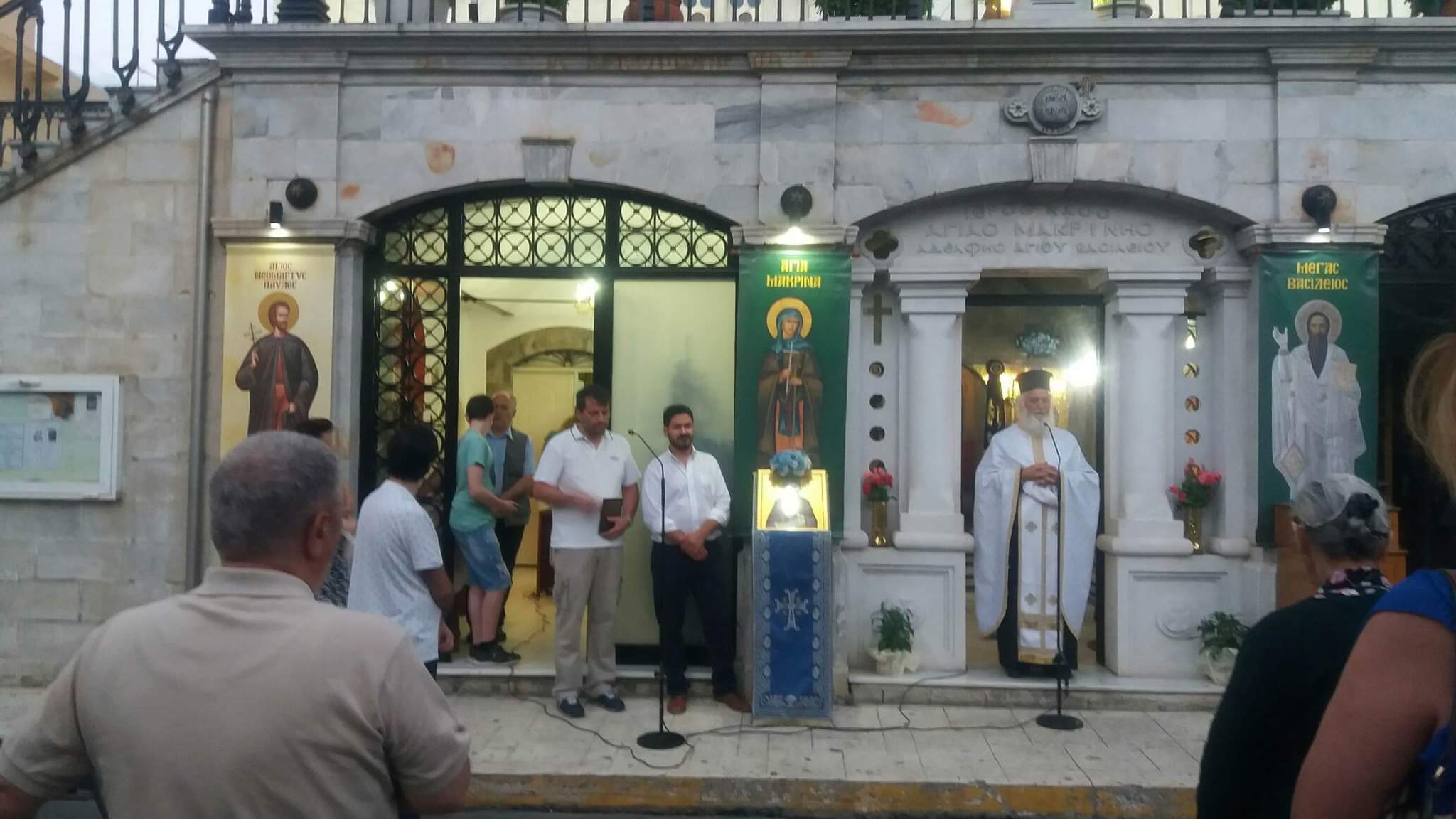 Πλήθος πιστών Χριστιανών προσέτρεξε στον Εσπερινό την παραμονή της εορτής, την Κυριακή 19 Ιουλίου, αλλά και ανήμερα στον Όρθρο και τη Θεία Λειτουργία, για να λάβει την ευλογία της αγίας, αδελφής του αγίου Βασιλείου, Αρχιεπισκόπου Καισαρείας της Καππαδοκίας, Ουρανοφάντορος του Μεγάλου.