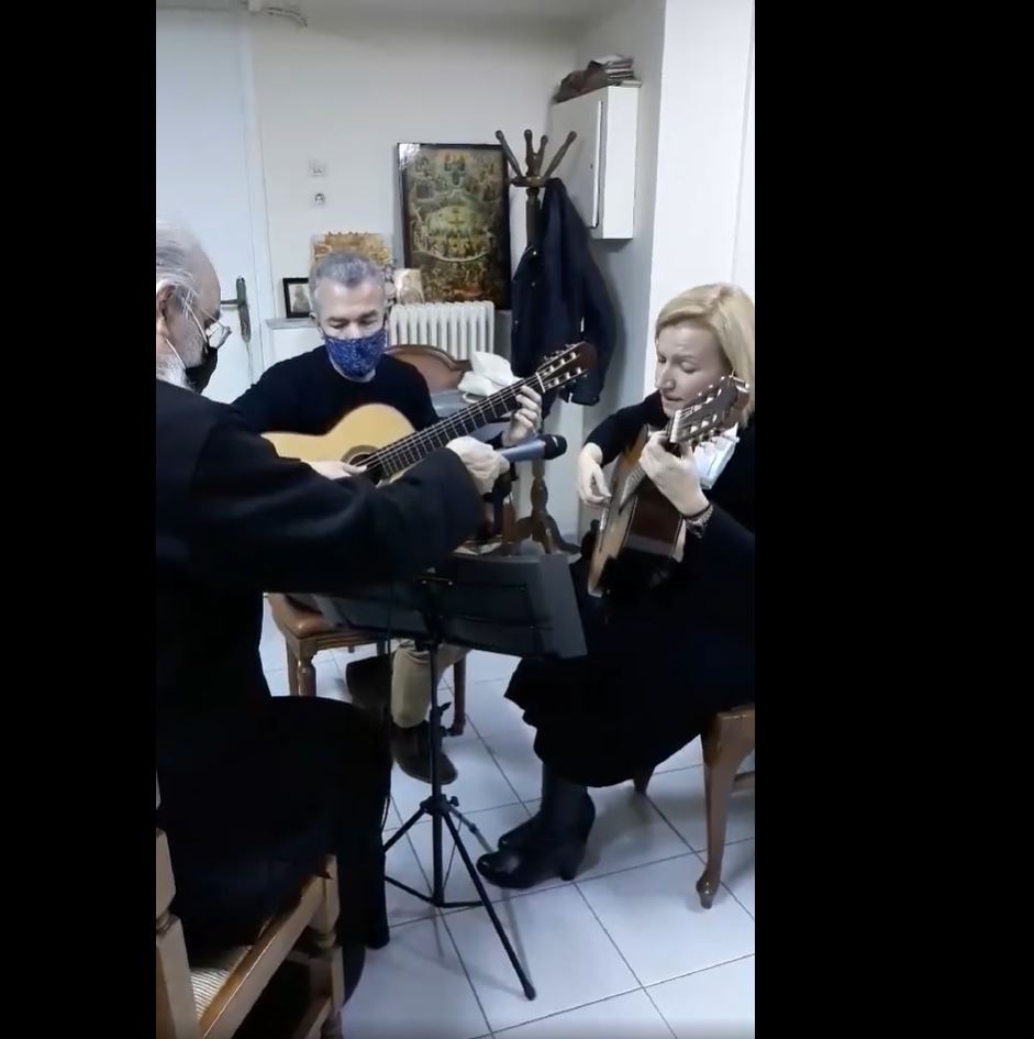 Έτσι χθες και πάλι προσπαθήσαμε να τις ξεκουράσουμε με ένα ζευγάρι νέων παιδιών μας τον Γιάννη και την Βασιλικούλα που με τις κιθάρες τους, έδωσαν χαρά, πνοή, και ελπίδα στην δύσκολη μοναξιά τους.