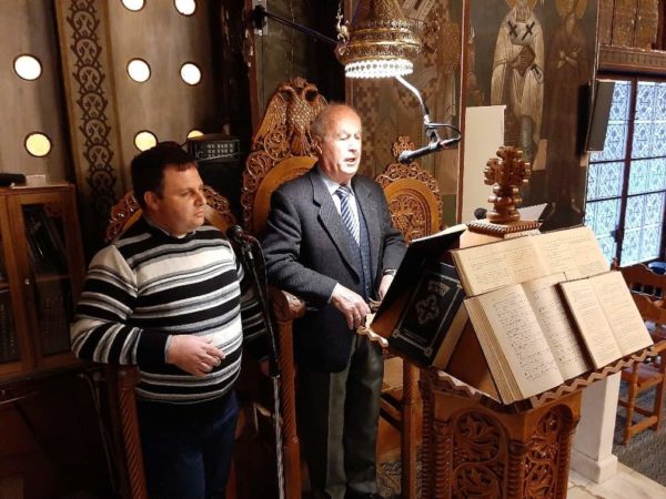 Επίσης στο δεξιό αναλόγιο απέδωσε τους ύμνους ο Πρωτοψάλτης της Ιεράς Μονής Αγίου Νικολάου Άνω Βάθειας κ. Χαράλαμπος Καρακατσάνης και στο αριστερό αναλόγιο ο ιεροψάλτης του ιερού ναού κ. Αθανάσιος Παλόγος με την συμμετοχή άλλων ιεροψαλτών.