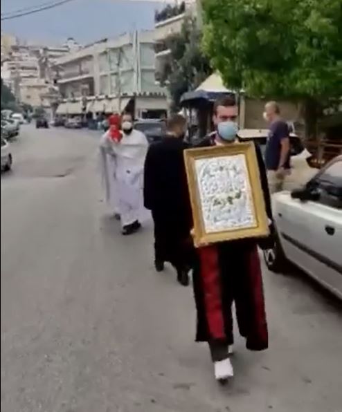 Λιτάνευση της εικόνας της Μεταμορφώσεως του Σωτήρος, με αίτημα την κατάπαυση της φωτιάς, έκαναν λίγο πριν τη Θεία Κοινωνία και το «Μετά Φόβου» οι ιερείς της Αγίας Μαρίνας Ηλιουπόλεως. «Σε άλλες εποχές όλοι θα ήμασταν στους δρόμους με λιτανείες να σταματήσουμε το κακό. Με αίτημα την κατάπαυση του πυρός σε μέρη ευλογημένα, λίγο πριν το “Μετά φόβου…” ο ίδιος ο Κύριος ημών Ιησούς Χριστός, η εικόνα της Μεταμορφώσεως Του και τα λείψανα των αγίων λιτανεύθηκαν πέριξ του ναού και ευλογήθηκαν τα τέσσερα σημεία του ορίζοντος, με τον κλήρο και τον λαό του Θεού εντός του ναού να ψάλει το «Κύριε ελέησον».