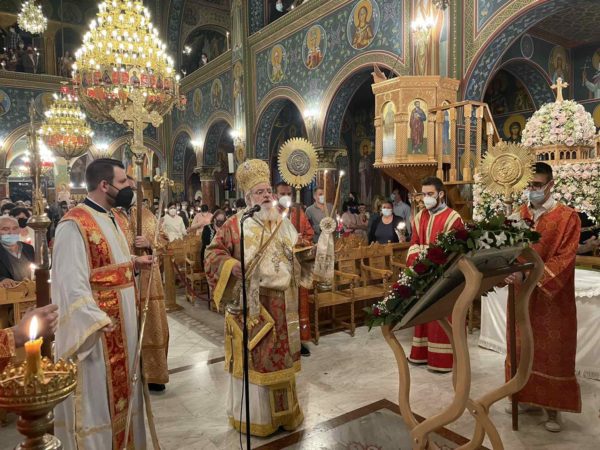Ο Μητροπολίτης Θεόκλητος ιερούργησε στο ναό της Αγίας Μαρίνης και την ακολουθία της Αναστάσεως και τέλεσε την Θεία Λειτουργία το βράδυ του μεγάλου Σαββάτου.