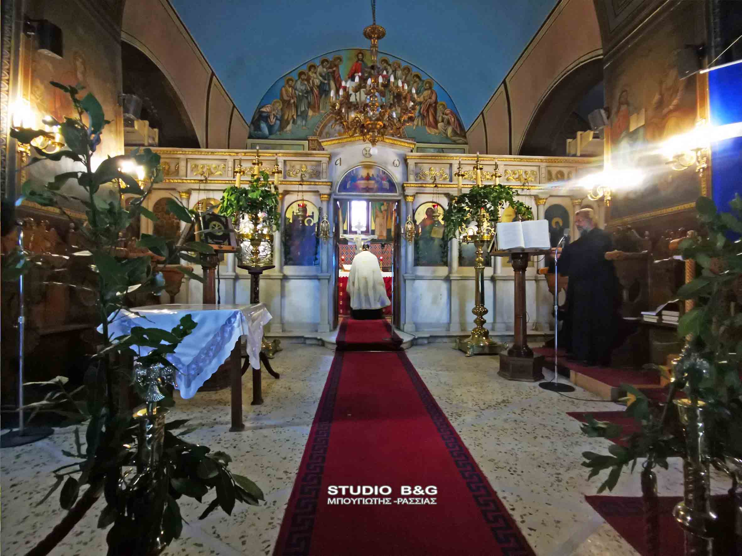 Τελέστηκε ο Εσπερινός των Βαΐων στον Μητροπολιτικό Ναό του Αγίου Γεωργίου στο Ναύπλιο το Σάββατο 24 Απριλίου 2021, παραμονή της μεγάλης εορτής κατά την οποία τιμάται η πανηγυρική είσοδος του Κυρίου Ιησού Χριστού στην Ιερουσαλήμ.