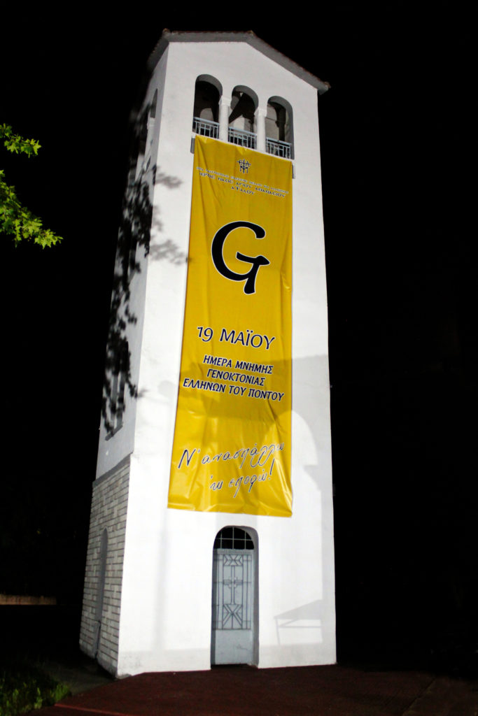 Την πρωτοβουλία του προϊσταμένου του ιερού ναού, Πρωτοπρεσβυτέρου Δρ. Βασιλείου Αποστολίδη, συμπλήρωσε η ανάρτηση μιας μεγάλης αφίσας στο καμπαναριό του ναού, η οποία αποτύπωνε το στίγμα της ημέρας. Καθ’ όλη τη διάρκεια της ημέρας, οι καμπάνες του ιερού ναού ηχούσαν πένθιμα, ενώ παράλληλα ακούγονταν από τα μεγάφωνα οι θρήνοι και τα μοιρολόγια, που με μοναδικό τρόπο αιώνες τώρα αποτυπώνει η γνήσια μουσική παράδοση του Πόντου. Με τον τρόπο αυτό θέλησε η τοπική ενορία -που το μεγαλύτερο μέρος της αποτελείται από Έλληνες πρόσφυγες του ποντιακού ελληνισμού- να τιμήσει τη μνήμη των 353.000 σφραγισθέντων Ελλήνων του Πόντου, που έπεσαν θύματα στις διώξεις της λαίλαπας των Νεότουρκων.