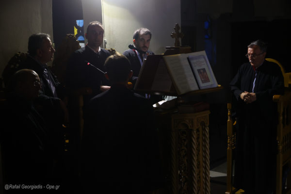 Την Θεία λειτουργία τέλεσε ο Πρωτ. π. Θεοδόσιος Αργυρόπουλος εφημέριος του Ιερού Ναού , ενώ το ιερό αναλογίο διηκόνησε ο πρωτοψάλτης του ναού κ. Δημήτριος Βλαχόπουλος με την συνοδεία του.