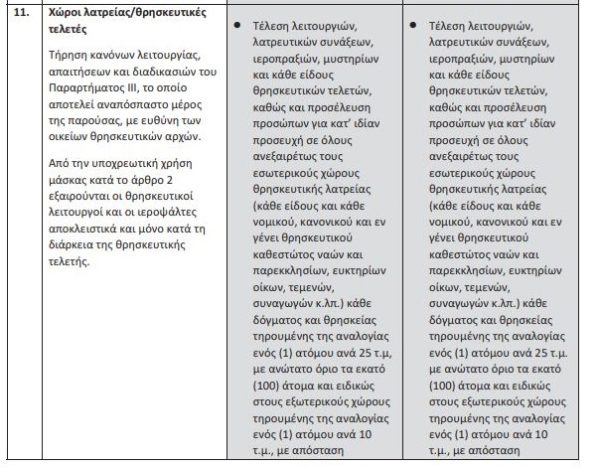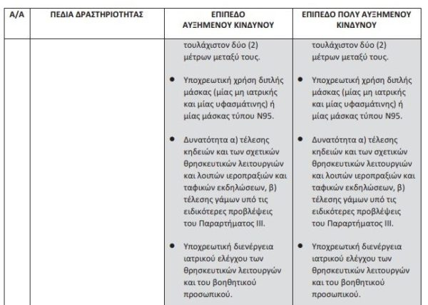 ΔΕΙΤΕ ΤΙ ΠΡΟΒΛΕΠΕΙ ΓΙΑ ΤΟΥΣ ΧΩΡΟΥΣ ΛΑΤΡΕΙΑΣ ΚΑΙ ΤΙΣ ΘΡΗΣΚΕΥΤΙΚΕΣ ΤΕΛΕΤΕΣ ΣΤΗΝ ΕΛΛΑΔΑ ΓΙΑ ΤΑ ΕΠΙΠΕΔΑ ΑΥΞΗΜΕΝΟΥ ΚΑΙ ΠΟΛΥ ΑΥΞΗΜΕΝΟΥ ΚΙΝΔΥΝΟΥ: