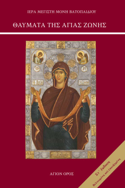 Τα Θαύματα της Αγίας Ζώνης καταγράφει σε μια καλαίσθητη έκδοσή της η Ιερά Μεγίστη Μονή Βατοπαιδίου.