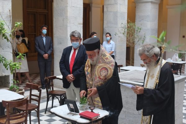 Κατόπιν προσκλήσεως του Δικηγορικού Συλλόγου Σύρου και του Προέδρου του κ. Κωνσταντίνου Φιφλή, ο Σεβασμιώτατος Μητροπολίτης Σύρου κ. Δωρόθεος μετέβη σήμερα το πρωί στο εμβληματικό Δημαρχιακό Μέγαρο Ερμουπόλεως, στις αίθουσες του οποίου στεγάζονται οι Δικαστικές Υπηρεσίες, όπου και τέλεσε τον Αγιασμό για την έναρξη του νέου Δικαστικού Έτους, με την παρουσία Εισαγγελέων, Αντεισαγγελέων και Δικαστών, του Προέδρου και Μελών του Δικηγορικού Συλλόγου Σύρου και Δικαστικών Υπαλλήλων.