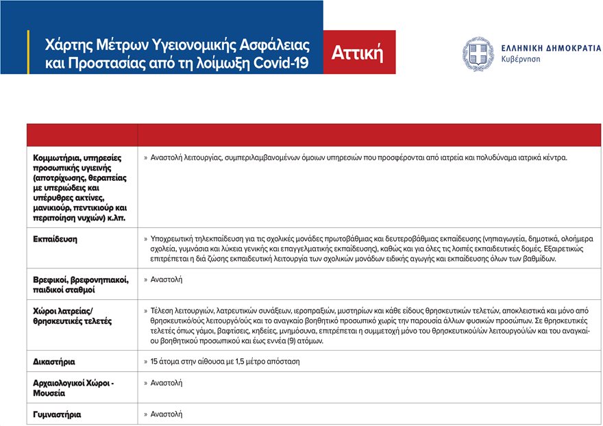 Η περιφερειακή Ενότητα της Αττικής συμπεριλαμβανομένων και όλων των νήσων και της περιοχής της Τροιζηνίας, μπαίνει από αύριο σε καθεστώς lockdown και ως εκ τούτου ισχύουν τα εξής: