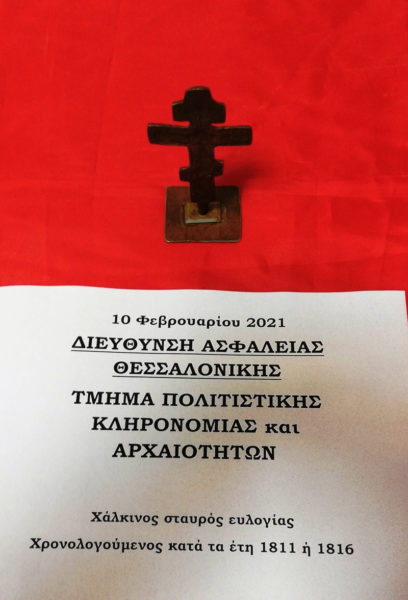Έναν θρησκευτικό σταυρό προσπάθησε να πουλήσει, μέσω διαδικτύου, 67χρονος ο οποίος συνελήφθη από αστυνομικούς του Τμήματος Πολιτιστικής Κληρονομιάς και Αρχαιοτήτων της Διεύθυνσης Ασφάλειας Θεσσαλονίκης.