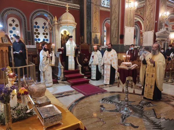 Η Θεία Λειτουργία τελέστηκε σε απολύτως κλειστό κύκλο και με τα ισχύοντα προβλεπόμενα μέτρα για την προστασία της δημόσιας υγείας, ενώ για τους ίδιους λόγους δεν πραγματοποιήθηκε η καθιερωμένη δεξίωση, που γινόταν κατ’ έτος από το Εκκλ. Συμβούλιο του Ναού προς τιμήν των μαθητών και εκπαιδευτικών.