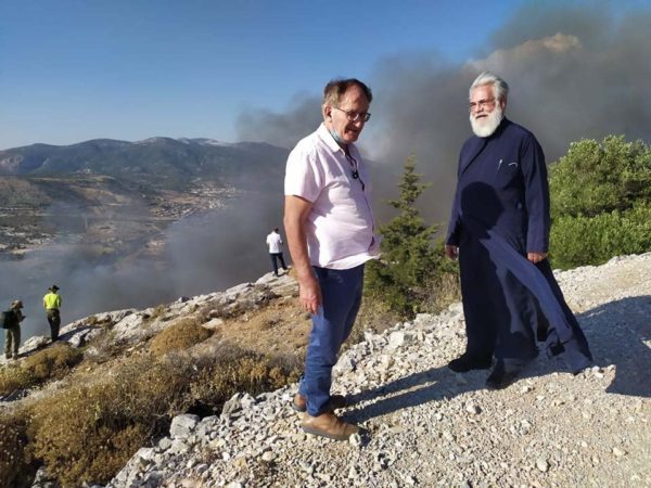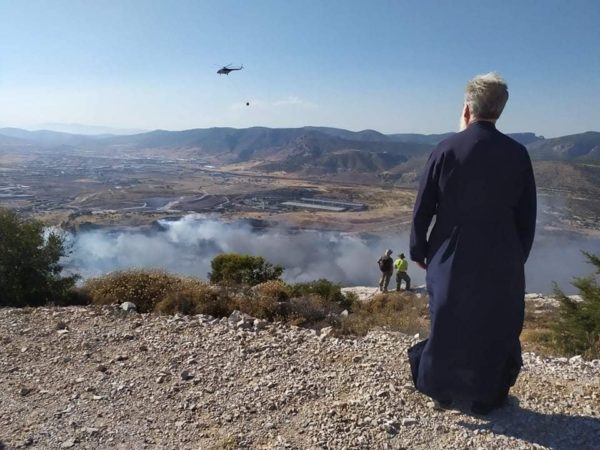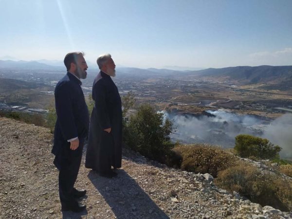 Νωρίς το απόγευμα της 6ης Αυγούστου, ο Σεβασμιώτατος έκανε αυτοψία στη νέα πυρκαγιά που ξεκίνησε από τα Άνω Λιόσια προς το Ποικίλο Όρος, μαζί με τον Δήμαρχο Πετρουπόλεως κο Στέφανο Βλάχο και τον διοικητή του 16ου Τμήματος της Πυροσβεστικής Υπηρεσίας.