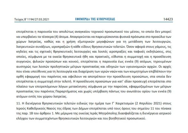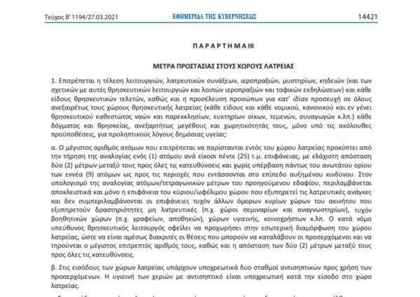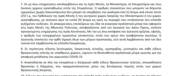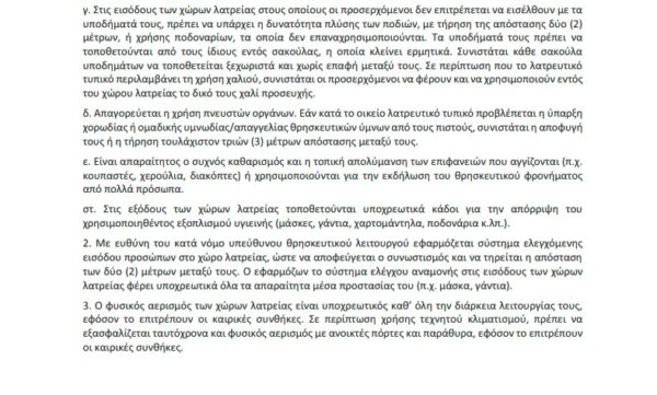 Επιπλέον για τους Ιερούς Ναούς ισχύουν τα μέτρα που παρατίθονται στο παράρτημα 3.