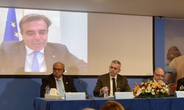 Αναφερόμενος στον διάλογο για το Μέλλον της Ευρώπης, υπογράμμισε ότι «η ΕΕ υπό την κοινή προεδρία των θεσμικών της οργάνων έχει συστήσει μια πλατφόρμα για την ανταλλαγή απόψεων των πολιτών των κρατών μελών της και για την προβολή δράσεων που αφορούν τη γενικότερη προβληματική περί του Μέλλοντος της Ευρώπης. Φυσικά, θα ήταν απρόσφορος ένας τέτοιος διάλογος αν περιοριζόταν αποκλειστικά στο Μέλλον του ενωσιακού οικοδομήματος των 27 κρατών μελών της ΕΕ. Αντίθετα, στη ΔΣΟ θεωρούμε ότι το Μέλλον της Ευρώπης είναι υπόθεση όχι μόνο του συνόλου των 47 Ευρωπαϊκών Κρατών του Συμβουλίου της Ευρώπης, αλλά ακόμη και του υπόλοιπου κόσμου.