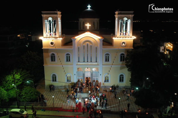 Με εντυπωσιακό τρόπο γιορτάστηκε η Ανάσταση του Κυρίου στον Ιερό Ναό της Ευαγγελίστριας της Χίου.