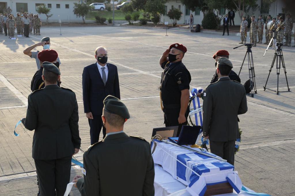 Στην τελετή παρευρέθηκαν ο Υπουργός Άμυνας, Χαράλαμπος Πετρίδης, η Πρόεδρος της Βουλής, Αννίτα Δημητρίου και Επίτροπος Προεδρίας, Φώτης Φωτίου.