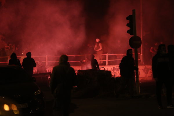 Αυτή την ώρα οι συμμετέχοντες στα επεισόδια έχουν ανάψει φωτιές σε διάφορα σημεία της περιοχής, ενώ τους καταδιώκουν οι αστυνομικοί.