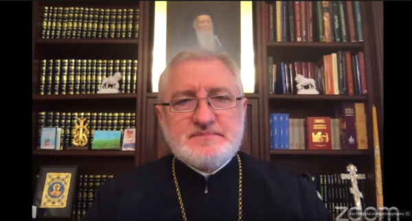 Αμέσως μετά Χαιρετισμό απηύθυνε ο Γ.Γ. Θρησκευμάτων κ. Γεώργιος Καλαντζής, εκπροσωπώντας την Υπουργό Παιδείας και Θρησκευμάτων κα Νίκη Κεραμέως, ο οποίος, αφού συνεχάρη την ΟΑΚ για το οργανωτικό επίτευγμα της διεξαγωγής της Συνόδου καθώς και για την πρωτοβουλία του Συνεδρίου, αναφέρθηκε στη διαρκή στήριξη του Υπουργείου Παιδείας προς την Εκκλησία και στο κατά πόσο το ιστορικό και παγκόσμιο γεγονός της Συνόδου με τις αποφάσεις του επηρεάζει τη ζωή των πιστών, ιδιαίτερα αυτή τη δύσκολη περίοδο της πανδημίας.