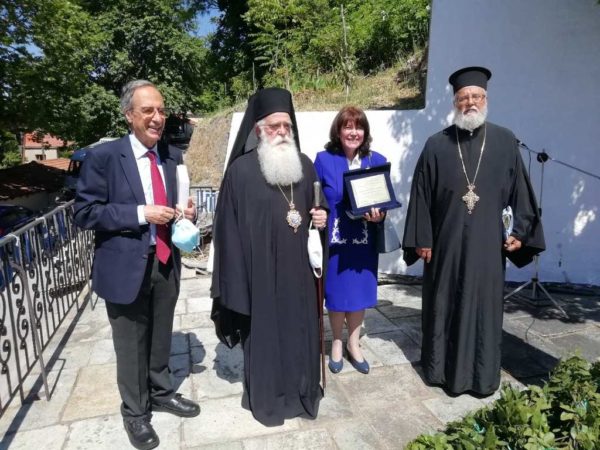 Στο τέλος της εκδήλωσης ο Σεβασμιώτατος απένειμε τιμητικές πλακέτες, εκ μέρους του Ναού στο ζεύγος Σπυρίδωνα Μαράτο, Δικηγόρο και Ιουλία Μαλαμίτση, Πυρηνική Ιατρό, για την συνεισφορά τους στην ανακαίνιση του Καθολικού της παλαιάς Ιεράς Μονής Αγίου Νικολάου Μηλεών, και στον Ιατρό κ. Νικόλαο Παπαθεοδώρου, για την συγγραφή του βιβλίου με την ιστορία του Ναού των Ταξιαρχών.