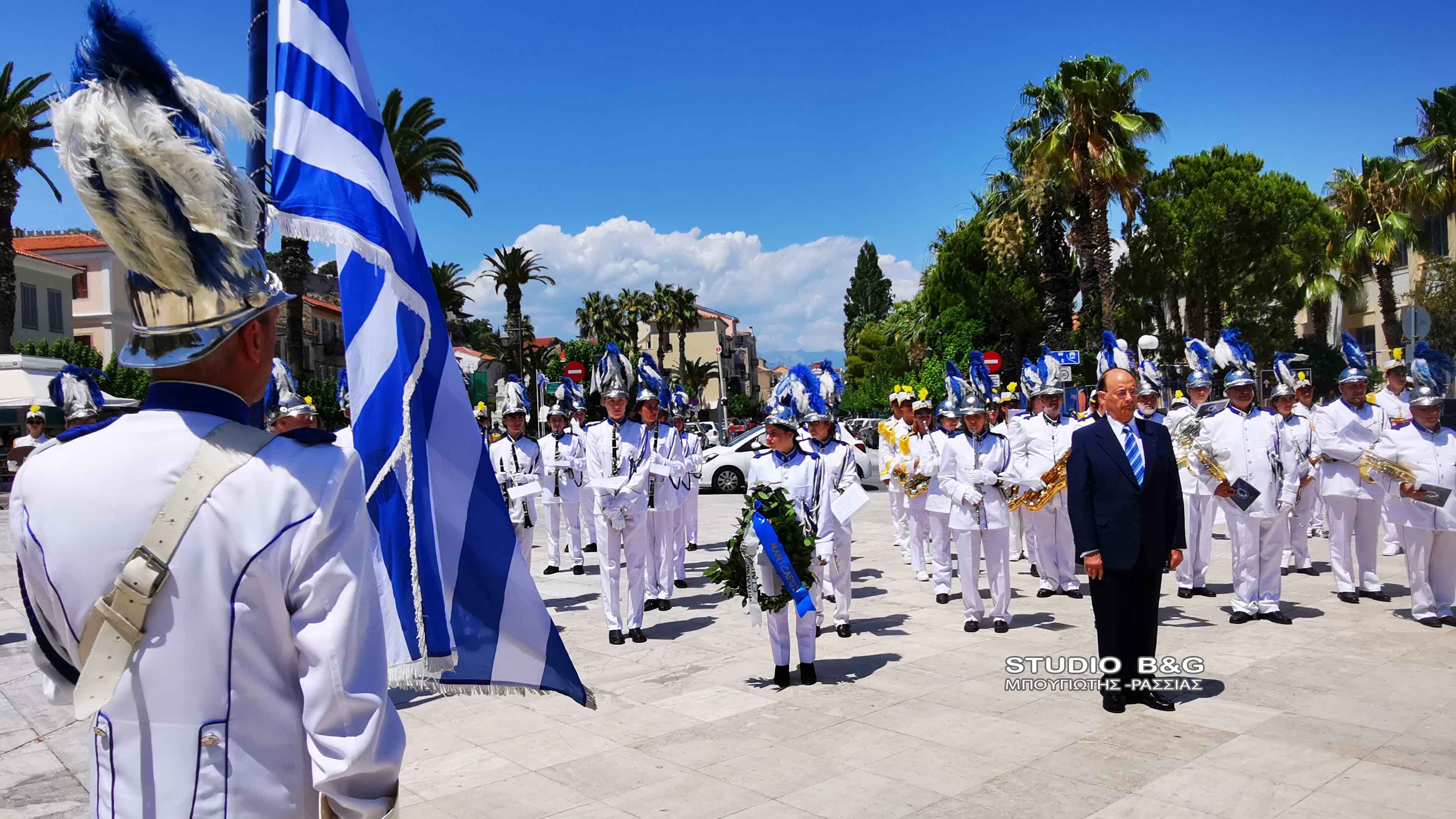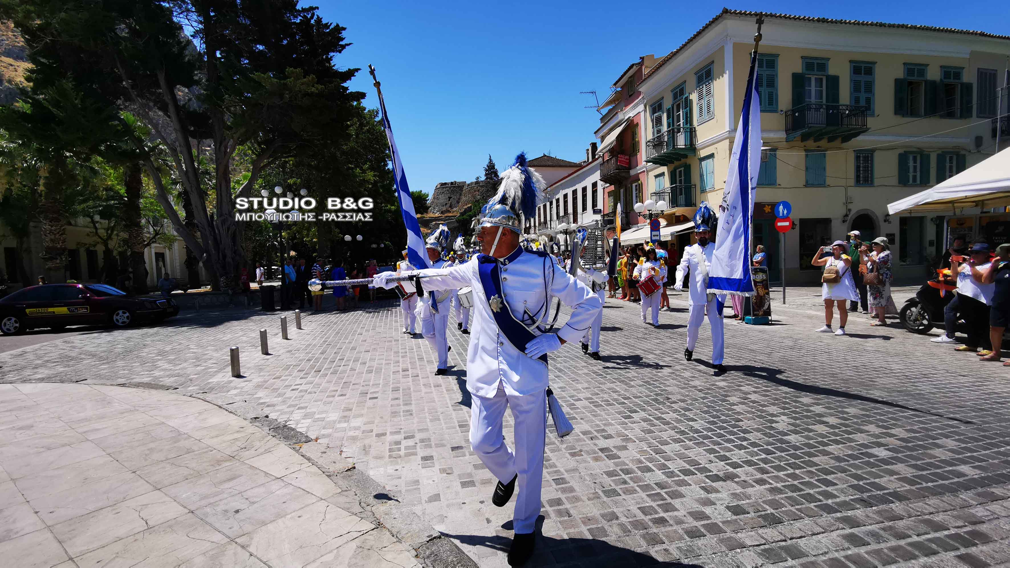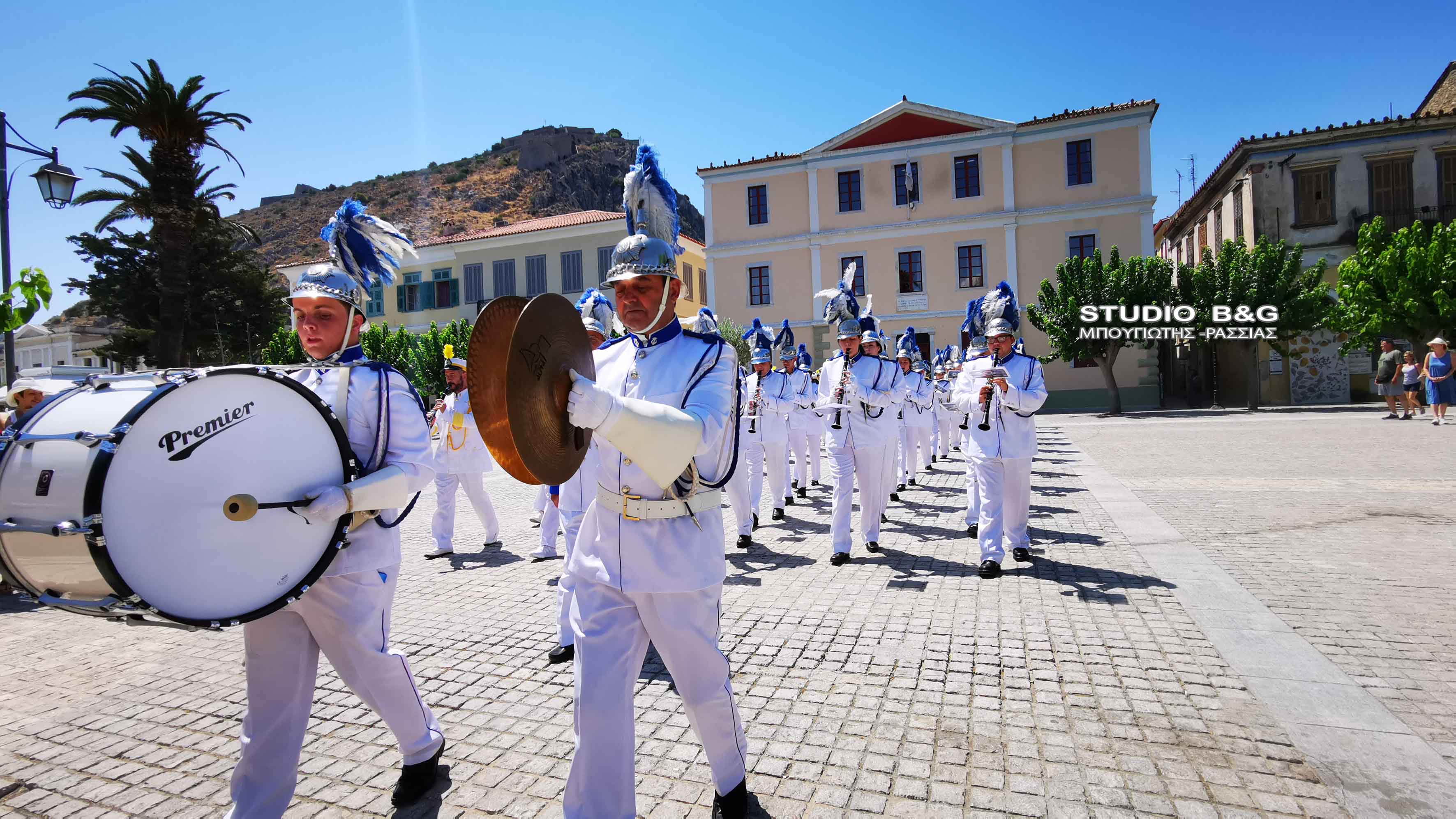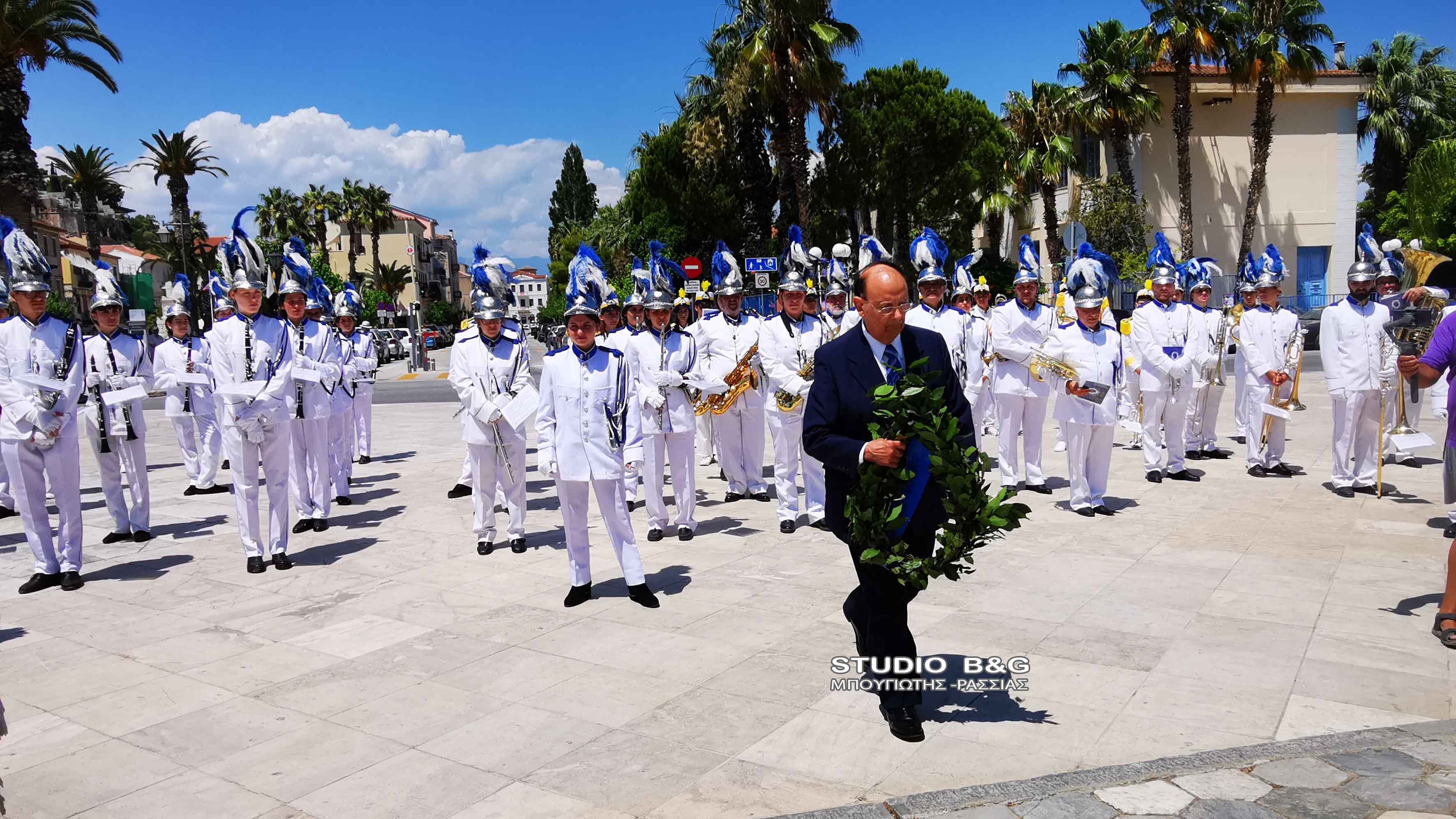 Στην συνέχεια τα μέλη της Φιλαρμονικής πραγματοποίησαν κατάθεση στεφάνου στο άγαλμα του κυβερνήτη στην ομώνυμη πλατεία της Πρωτεύουσας της Αργολίδας, ενώ στη συνέχεια μαζί με την φιλαρμονική Ναυπλίου παιάνισαν στα στενά της παλιάς πόλης.
