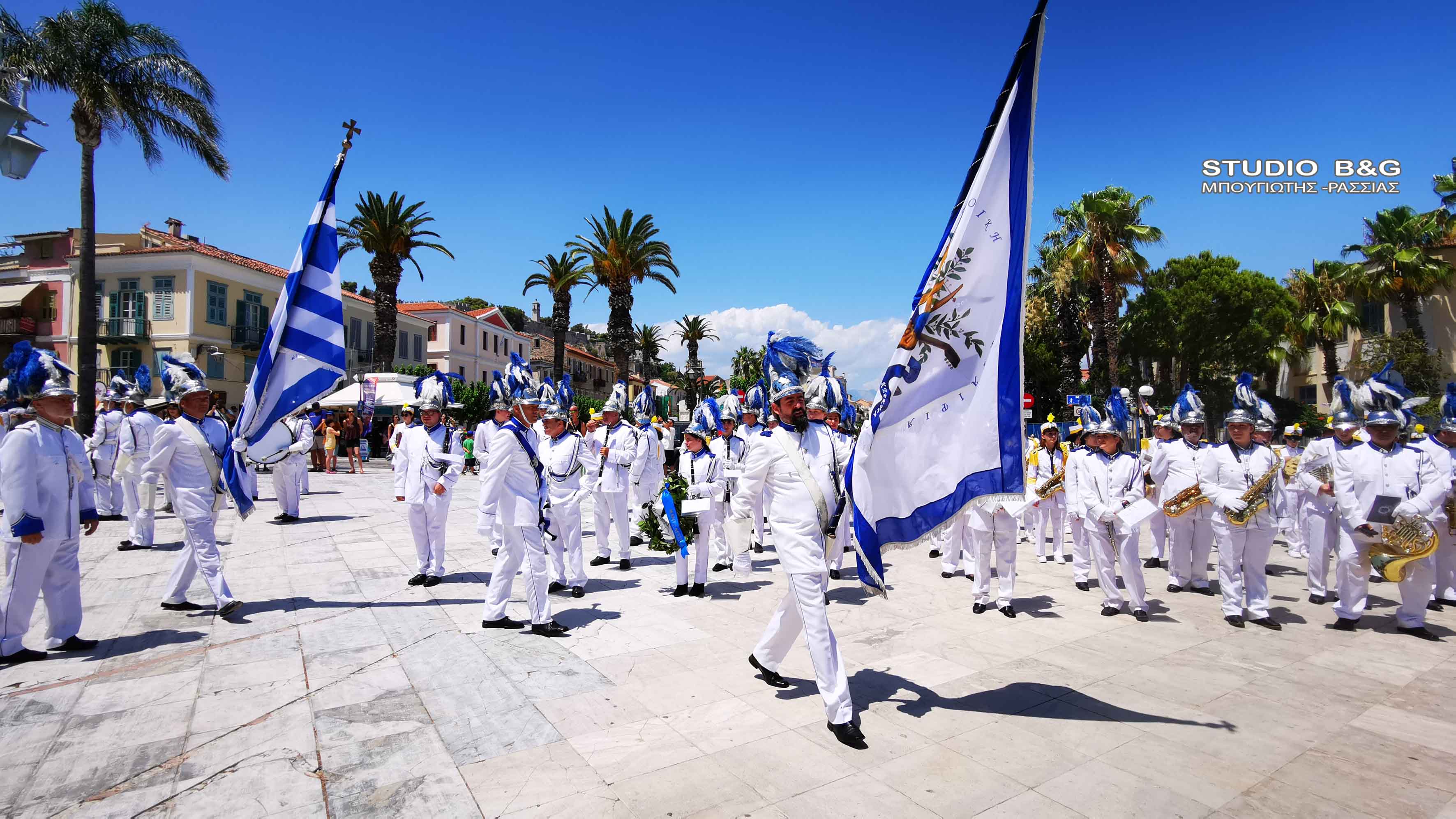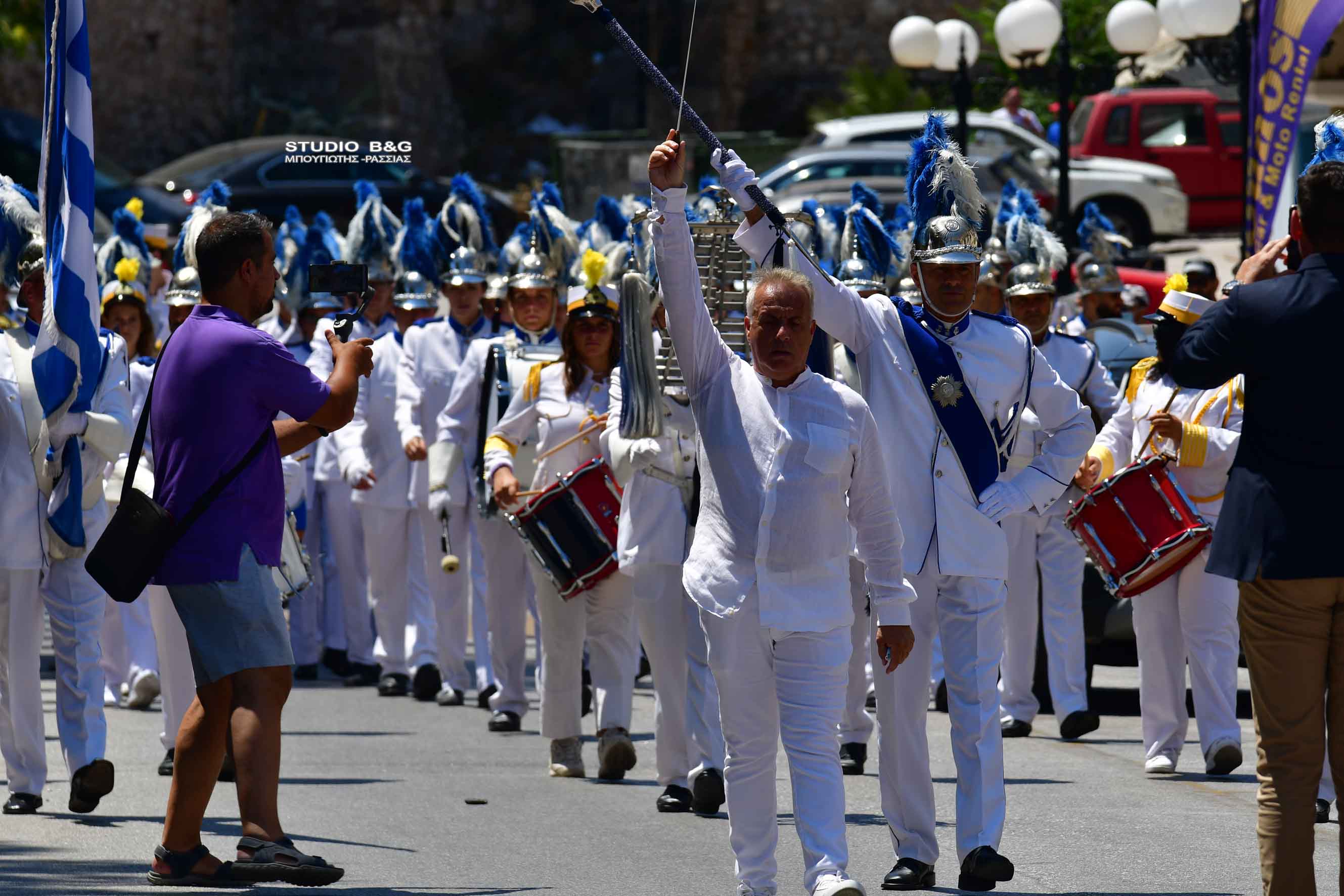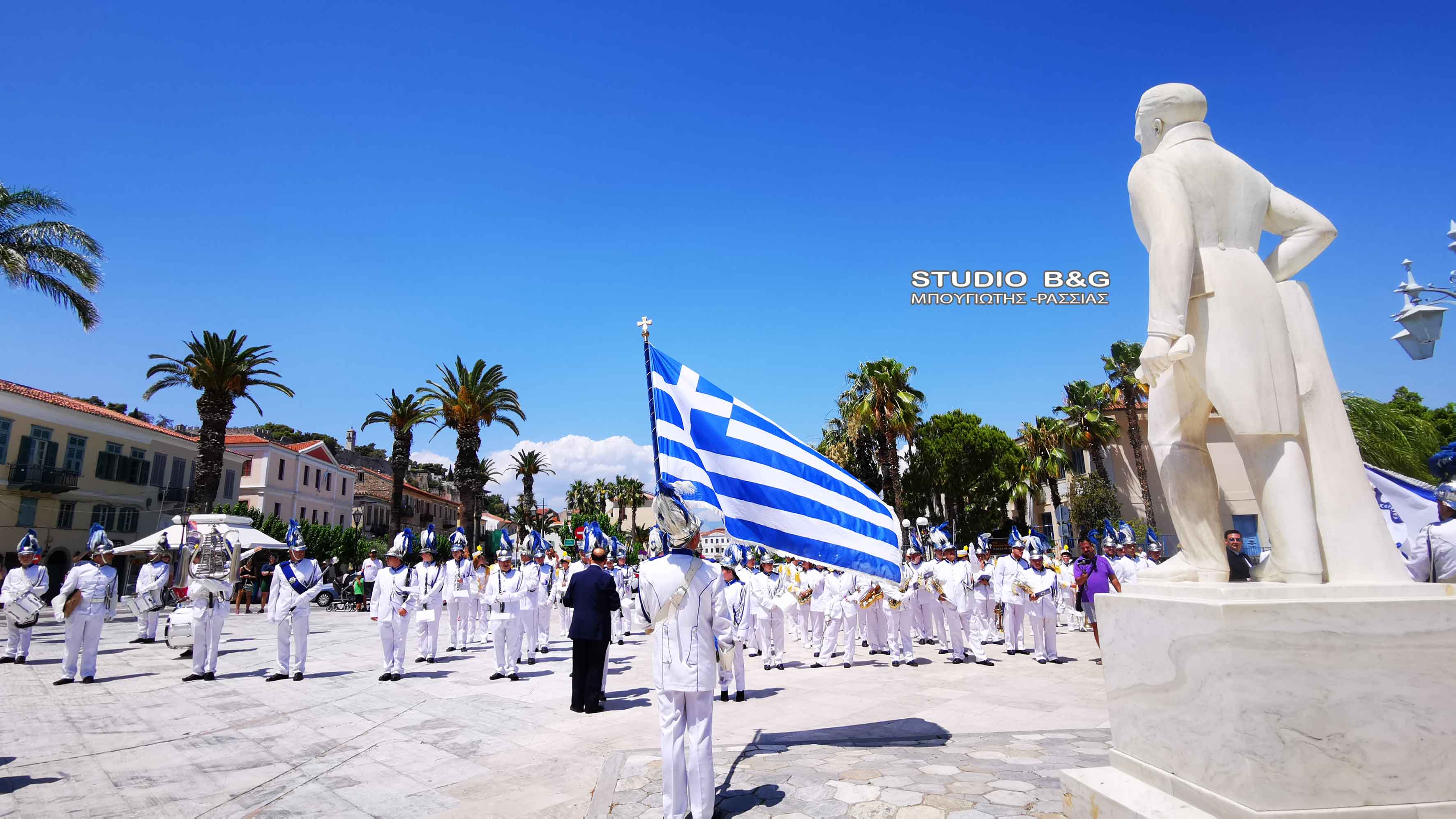 Στην συνέχεια τα μέλη της Φιλαρμονικής πραγματοποίησαν κατάθεση στεφάνου στο άγαλμα του κυβερνήτη στην ομώνυμη πλατεία της Πρωτεύουσας της Αργολίδας, ενώ στη συνέχεια μαζί με την φιλαρμονική Ναυπλίου παιάνισαν στα στενά της παλιάς πόλης.