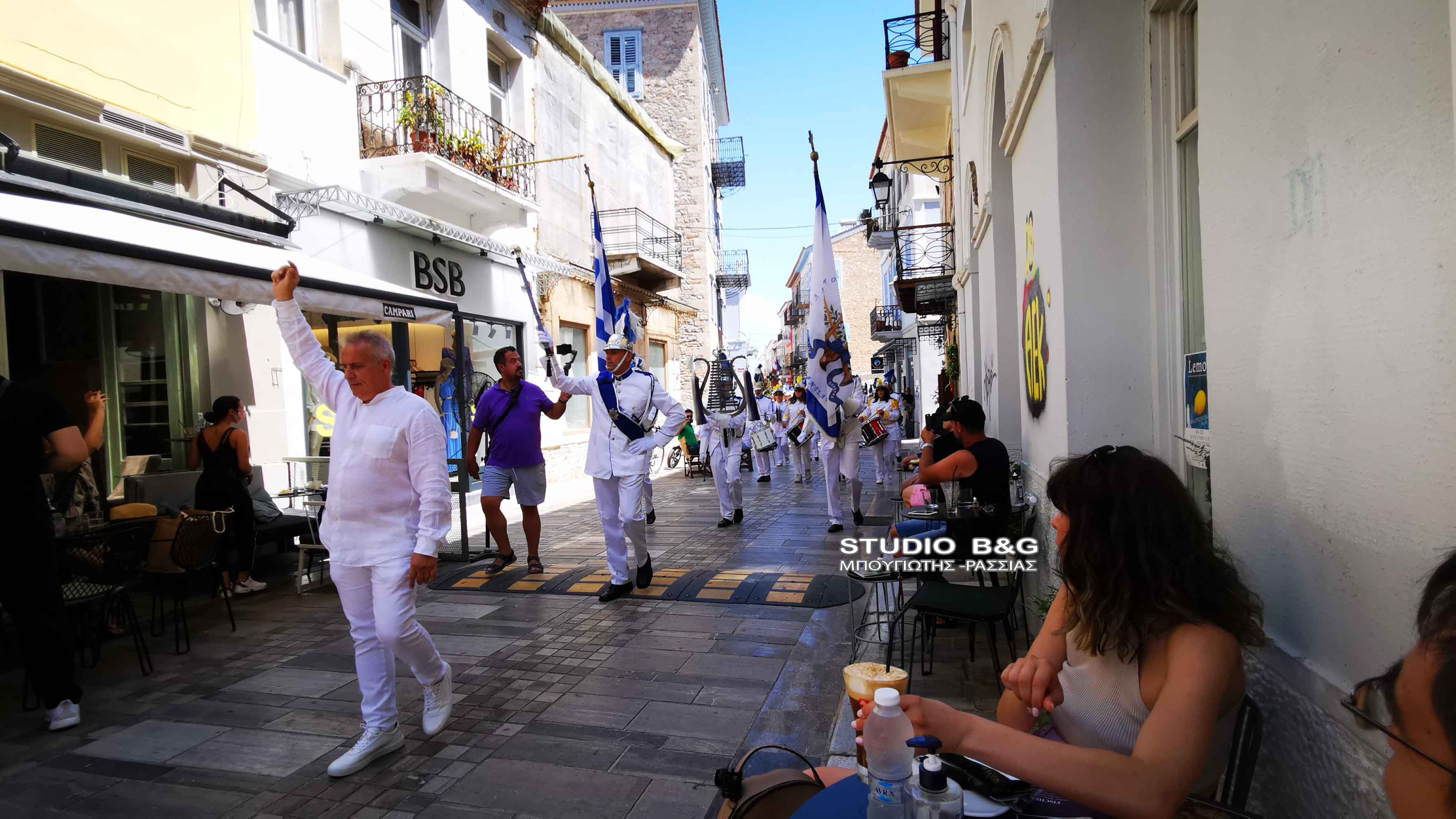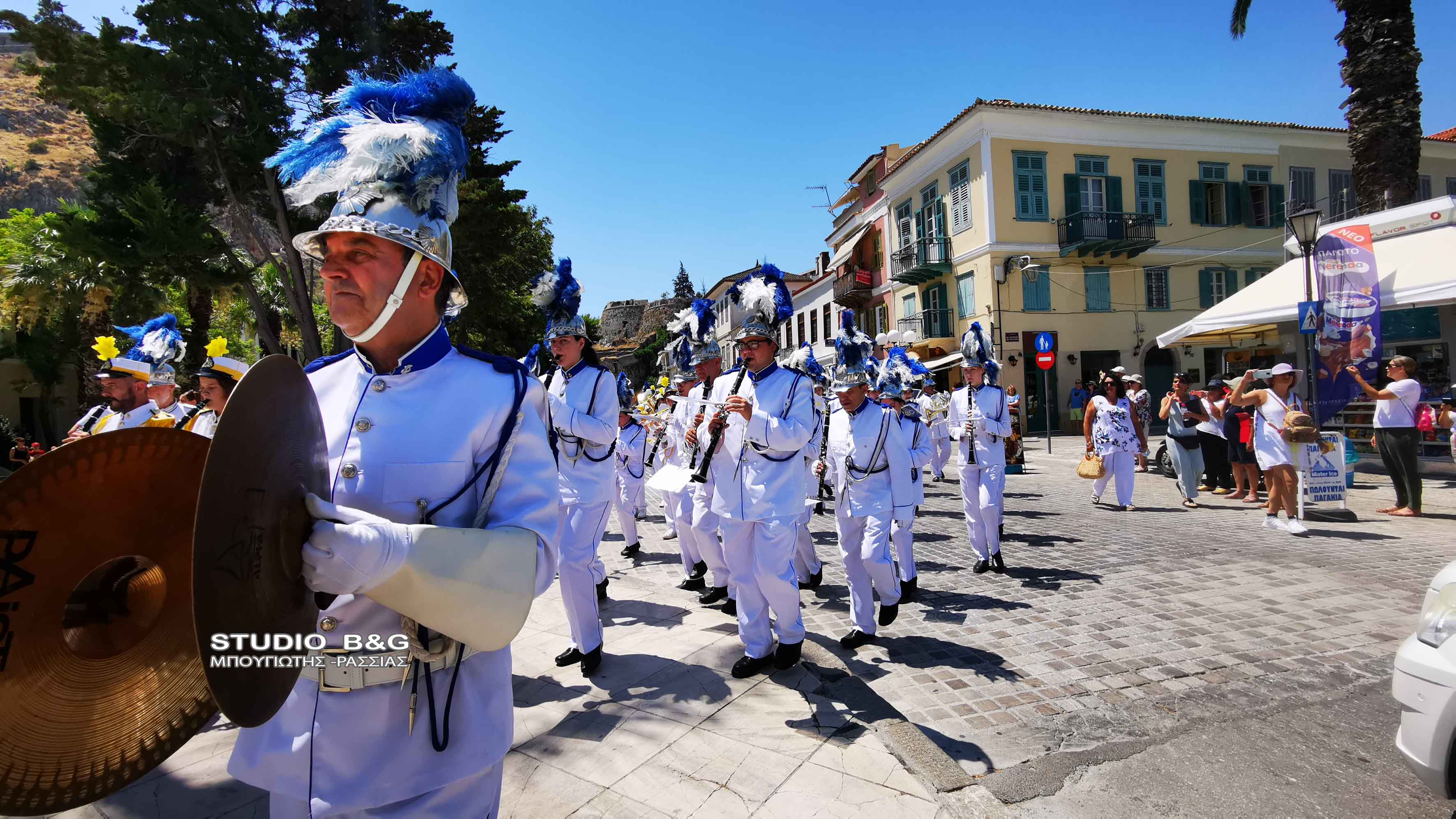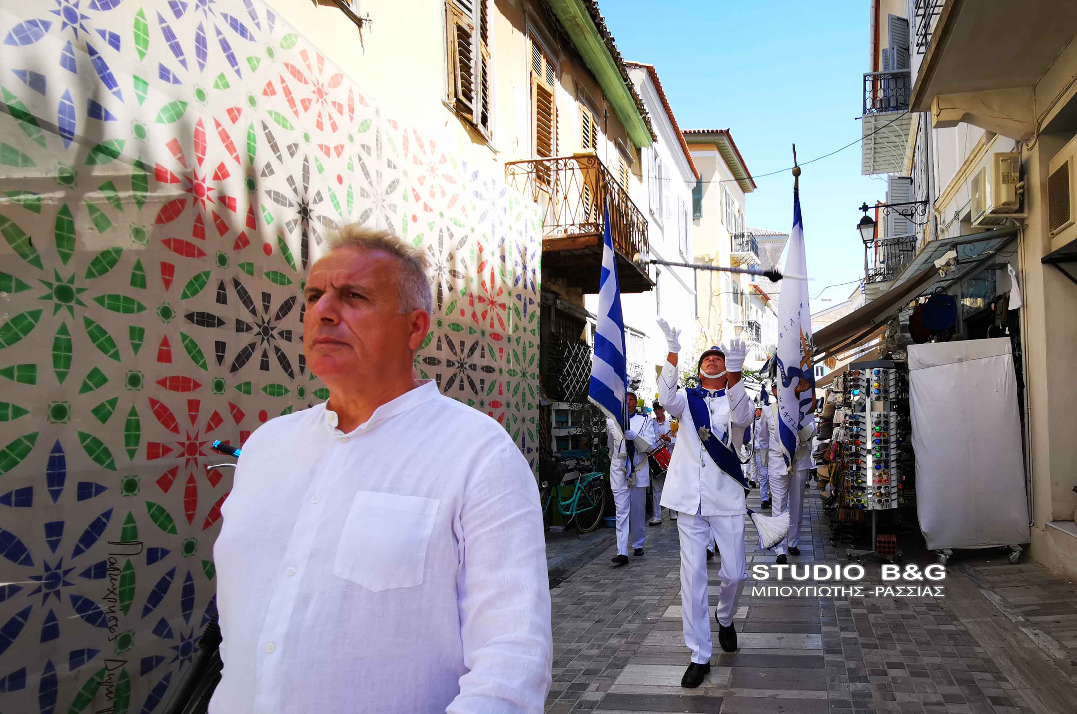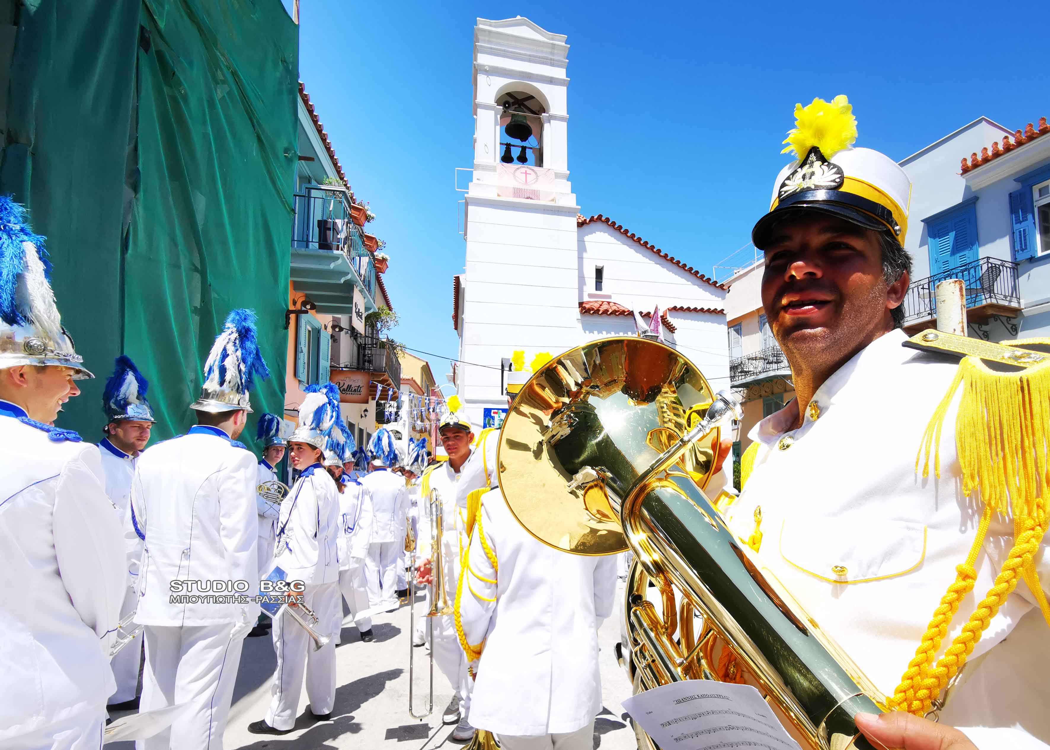 Στην συνέχεια τα μέλη της Φιλαρμονικής πραγματοποίησαν κατάθεση στεφάνου στο άγαλμα του κυβερνήτη στην ομώνυμη πλατεία της Πρωτεύουσας της Αργολίδας, ενώ στη συνέχεια μαζί με την φιλαρμονική Ναυπλίου παιάνισαν στα στενά της παλιάς πόλης.
