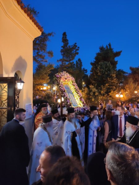 Έλαβε χώρα ο Πανηγυρικός Εσπερινός και η Περιφορά στον εορτάζοντα Ιερό Ναό Αγίας Παρασκευής Ομωνύμου Δήμου Αττικής παρουσία πολυπληθούς εκκλησιάσματος, χοροστατούντος του Μητροπολίτου Βρεσθένης κ. Θεοκλήτου.