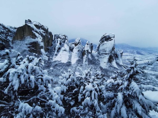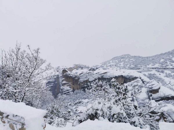 Ευλογία από τα χιονισμένα Μετέωρα και την Ιερά Μονή Ρουσάνου