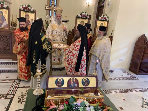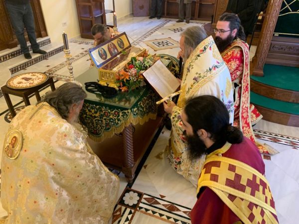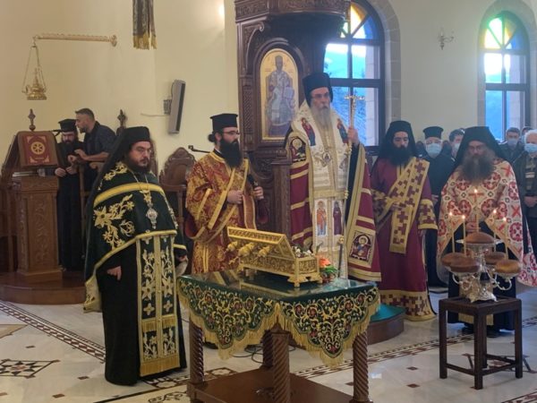 Επιπροσθέτως, ενώπιον του Ιερού Λειψάνου του Οσίου Νικηφόρου, ο Σεβασμιώτατος κ.Αμφιλόχιος ανέπεμψε δέηση, τόσο κατά την διάρκεια του Εσπερινού όσο και της Θείας Λειτουργίας: «υπέρ υγείας και αναρρώσεως πάντων των υπό ασθενούντων εκ της πανδημίας ταύτης, των ιατρών, νοσηλευτών και διακόνων της υγείας και υπέρ αναπαύσεως των ψυχών των εκ της πανδημίας τελειωθέντων».