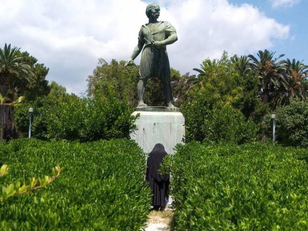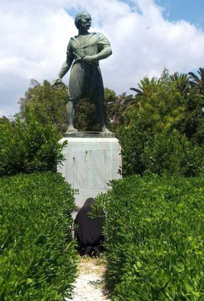 Η ΦΩΤΟΓΡΑΦΙΑ ΤΗΣ ΗΜΕΡΑΣ: Γονατιστός στον ανδριάντα του Κανάρη
