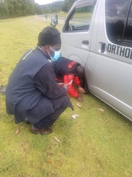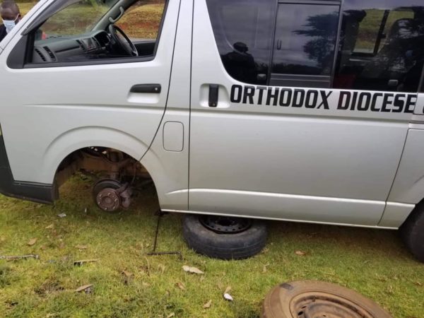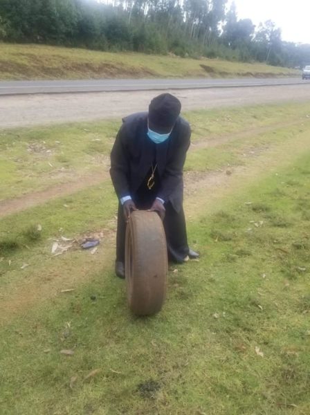 “Το πρωινό μας επεισόδιο στον δρόμο για την εκκλησία” αναφέρει ο Θεοφιλέστατος Επίσκοπος Νιέρι και Όρους Κένυας κ. Νεόφυτος. “Τα καταφέραμε” συμπληρώνει. Στα επίκαιρα φωτογραφικά στιγμιότυπα βοηθάει, συνεισφέροντας και ο ίδιος στην αντικατάσταση ενός σκασμένου λάστιχου.