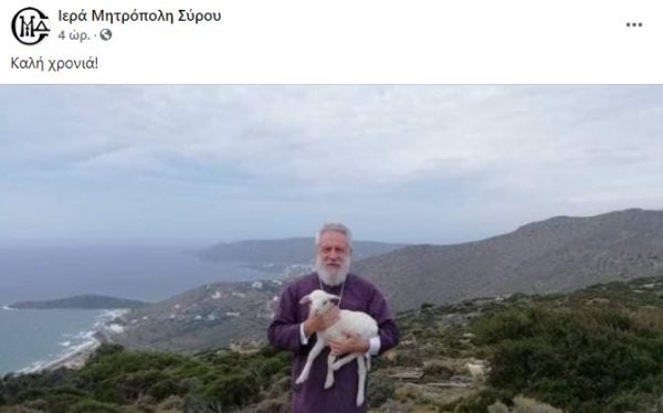 “Καλή χρονιά!” εκ μέρους της Ιεράς Μητροπολέως Σύρου και του Σεβασμιωτάτου Μητροπολίτου κ. Δωροθέου με την δημοσίευση του ως άνω και του κάτωθι φωτογραφικού στιγμιοτύπου. Ο Σεβασμιώτατος ευλογεί τη νέα χρονιά με ένα μικρό αρνάκι στα χέρια του.