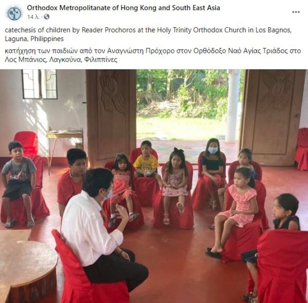 Κατήχηση μικρών χριστιανόπουλων στον Ορθόδοξο Ναό Αγίας Τριάδος στο Λος Μπάνιος, Λαγκούνα, Φιλιππίνες, από όπου αλιεύουμε τη φωτογραφία της σημερινής ημέρας.
