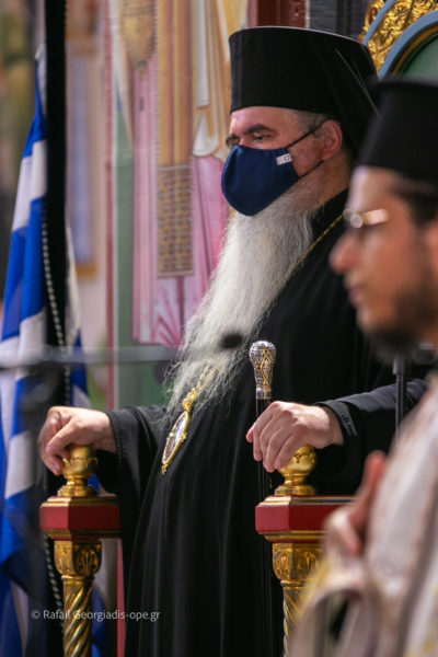 Κατά την διάρκεια του Εσπερινού, ο Θεοφιλέστατος Επίσκοπος ανέγνωσε ευχή για την κατάσβεση των πυρκαγιών.