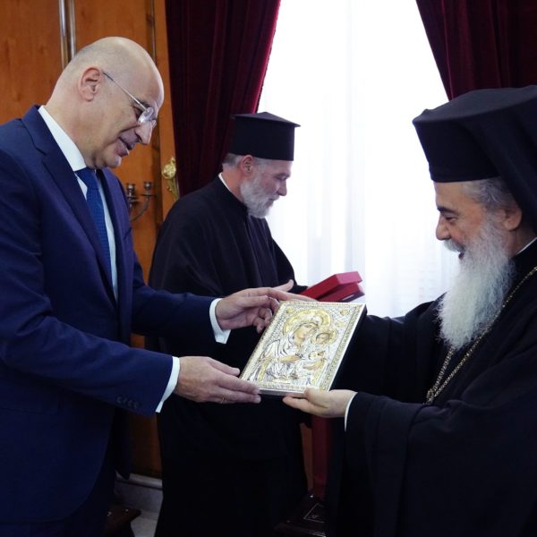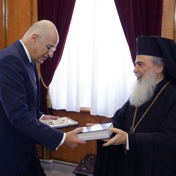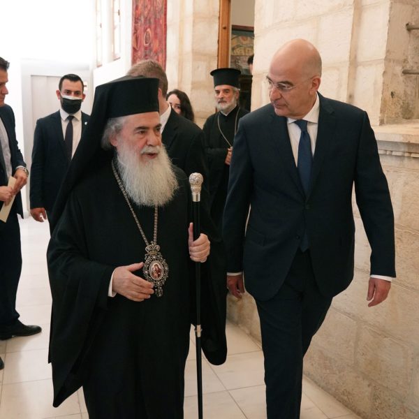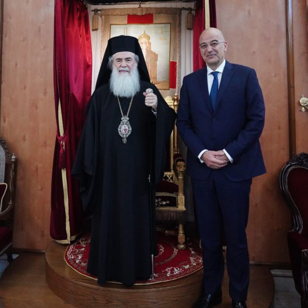 Η προστασία των Ιερών Προσκυνημάτων στο επίκεντρο της συνάντησης Πατριάρχη Ιεροσολύμων – Νίκου Δένδια