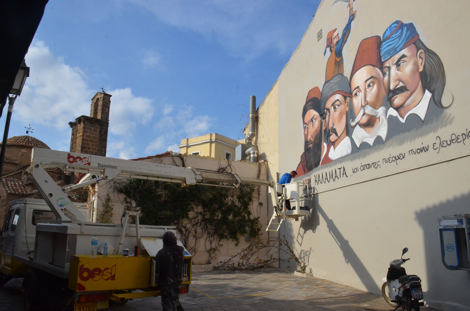 Ο καλλιτέχνης Κώστας Λούζης, γνωστός ως Skitsofrenis ζωγράφισε με σπρέι τις μορφές των αγωνιστών του 1821, σε τοίχο, δίπλα στην πλατεία των Αγίων Αποστόλων στην Καλαμάτα.