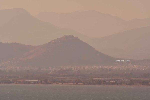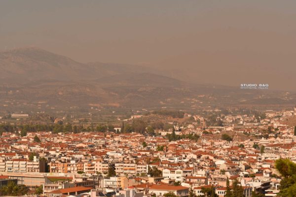 Κατακόκκινο το τοπίο στο Ναύπλιο απο την κάπνα