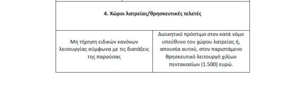 To Πρόστιμο σε περίπτωση παράβασης των μέτρων παραμένει στα 1.500 ευρώ στον παριστάμενο θρησκευτικό λειτουργό.