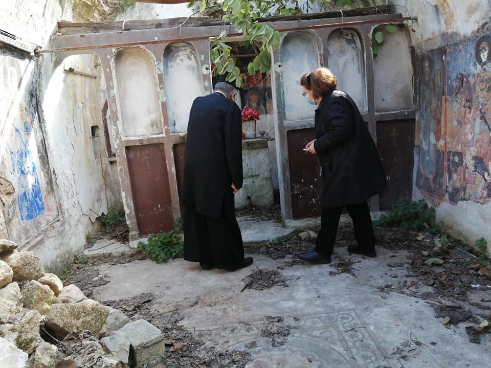 Αυτοψία της Υπουργού Πολιτισμού Λίνας Μενδώνη στην Παναγία Μουσταπίδαινα στον Ελαιώνα και στον Άγιο Στέφανο Κηφισού έλαβε χώρα το πρωί της 16ης Μαρτίου.