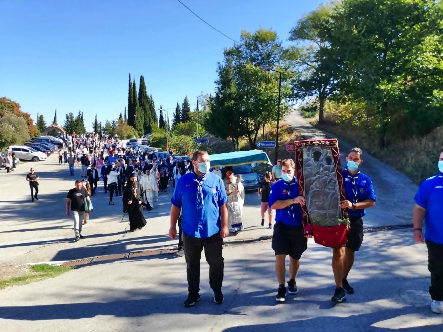 Την Τιμία Κάρα κόμισε ο Καθηγούμενος της Ιεράς Μονής Παναγίας «Κορώνης» Πανοσιολογιώτατος Αρχιμανδρίτης π. Μεθόδιος Κολοβός.
