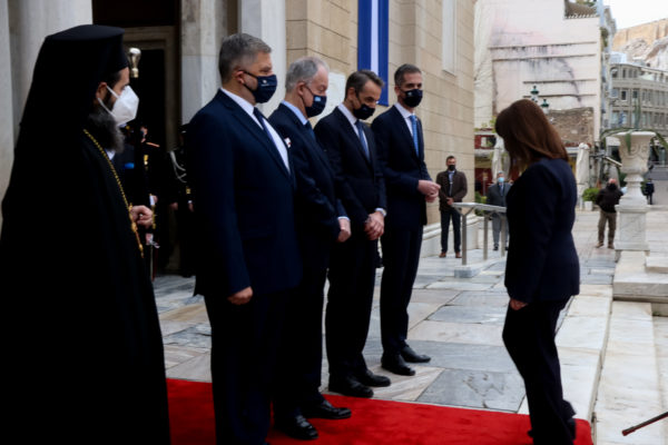 Παρόντες ήταν η Πρόεδρος της Δημοκρατίας Κατερίνα Σακελλαροπούλου, ο Πρωθυπουργός Κυριάκος Μητσοτάκης, ο αρχηγός της αξιωματικής αντιπολίτευσης Αλέξης Τσίπρας, ο πρόεδρος της Βουλής Κ. Τασούλας, ο Περιφερειάρχης Αττικής Γ. Πατούλης, η πρόεδρος της Επιτροπής Ελλάδα 2021, Γιάννα Αγγελοπούλου, εκπρόσωποι κομμάτων.
