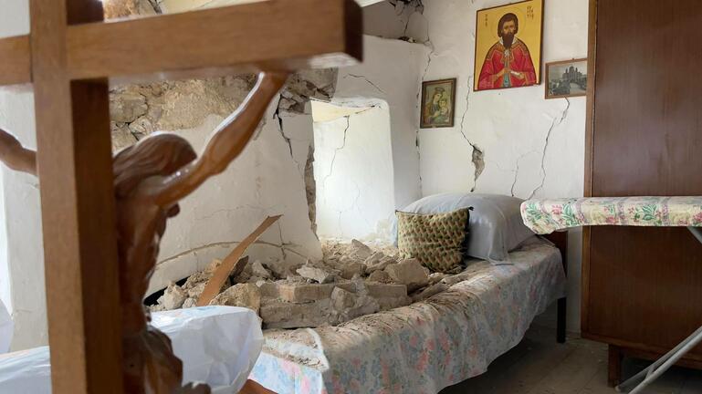 Λαβωμένη” από τον καταστροφικό σεισμό των 5,8 ρίχτερ που σημειώθηκε την Δευτέρα, βγήκε και η Ιερά Μονή Κοιμήσεως της Θεοτόκου Αγκαράθου, στο Ηράκλειο της Κρήτης. Ο γηραιότερος μοναχός π. Ευγένιος σώθηκε από θαύμα αναφέρει σε σημερινό του δημοσίευμα το cretalive.gr.